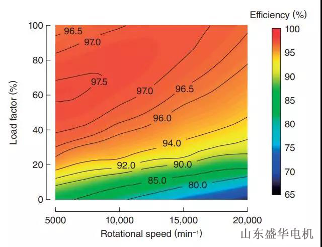 最終通過(guò)仿真,該大功率電機(jī)在額定運(yùn)行點(diǎn)上的效率為96%,而最大效率超過(guò)97%。溫升也低于預(yù)期。