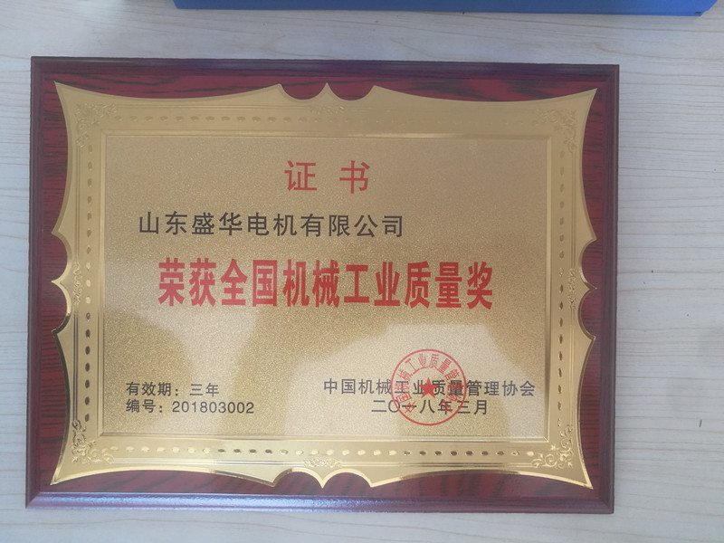 盛華電機公司資質榮譽《全國機械工業質量獎》