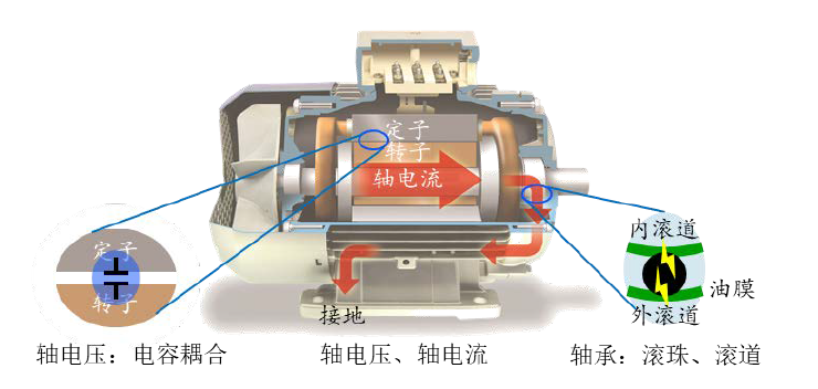 軸電流的特點是低電壓大電流,對軸承系統的傷害可以說是防不勝防。軸電流的產生緣于軸電壓和閉合回路,要解決軸電流問題可以從消除軸電壓或切斷回路兩個途徑進行解決。