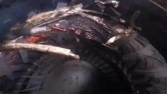 電機(jī)雖有著堅(jiān)硬的外殼保護(hù)著,但其內(nèi)部卻脆弱至極。比如之前一個(gè)客戶廠里的電機(jī),因固體物料從接線盒處掉入了電機(jī)內(nèi)部,固體物料卡到了電機(jī)定轉(zhuǎn)子的氣隙之間,造成電機(jī)掃膛,直接磨壞了電機(jī)繞組絕緣,使電機(jī)出現(xiàn)燒毀故障。